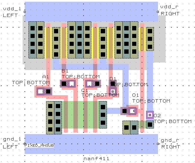 Schematic of the standard cell "nanf411" with device sizes in lambda.