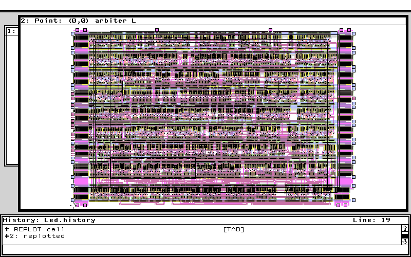 a file called 'arbiter.L'. A view of this layout in the Mentor Led