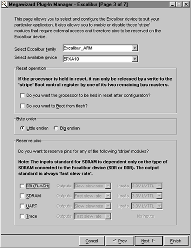 In MegaWizard Plug-In Manager - Excalibur page 3, specify the following responses to the wizard prompts: