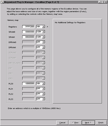 | Registers | Make sure 7FFFC000 is specified as the base address and 16K is selected in the size list. |