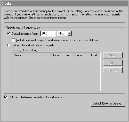 In the Category list, select Clocks under Timing Settings. The Clocks page appears.