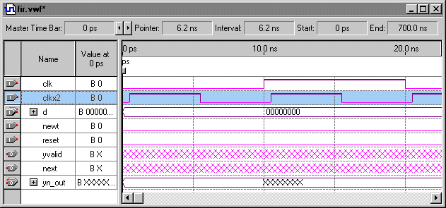 Click OK. The clkx2 waveform is created according to the clockb clock settings.
