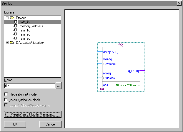 click Finish. A preview of the new fifo symbol appears in the Symbol dialog