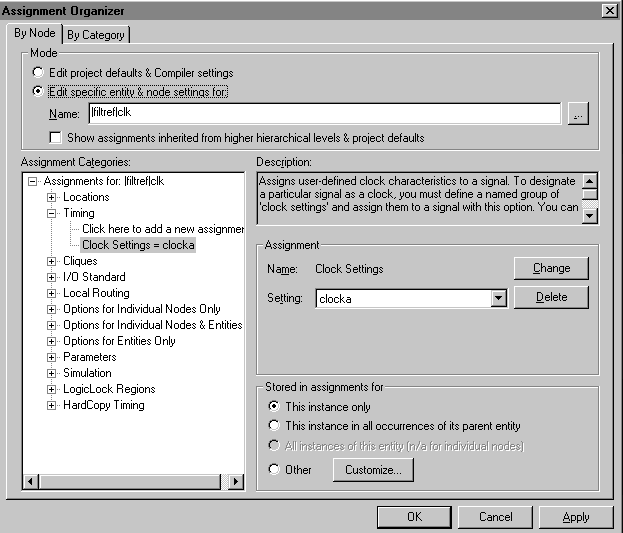 | You can also specify many other types of individual timing assignments. You can go to "Making Individual Timing Assignments" in Quartus II Help for more information on available timing assignments. | |